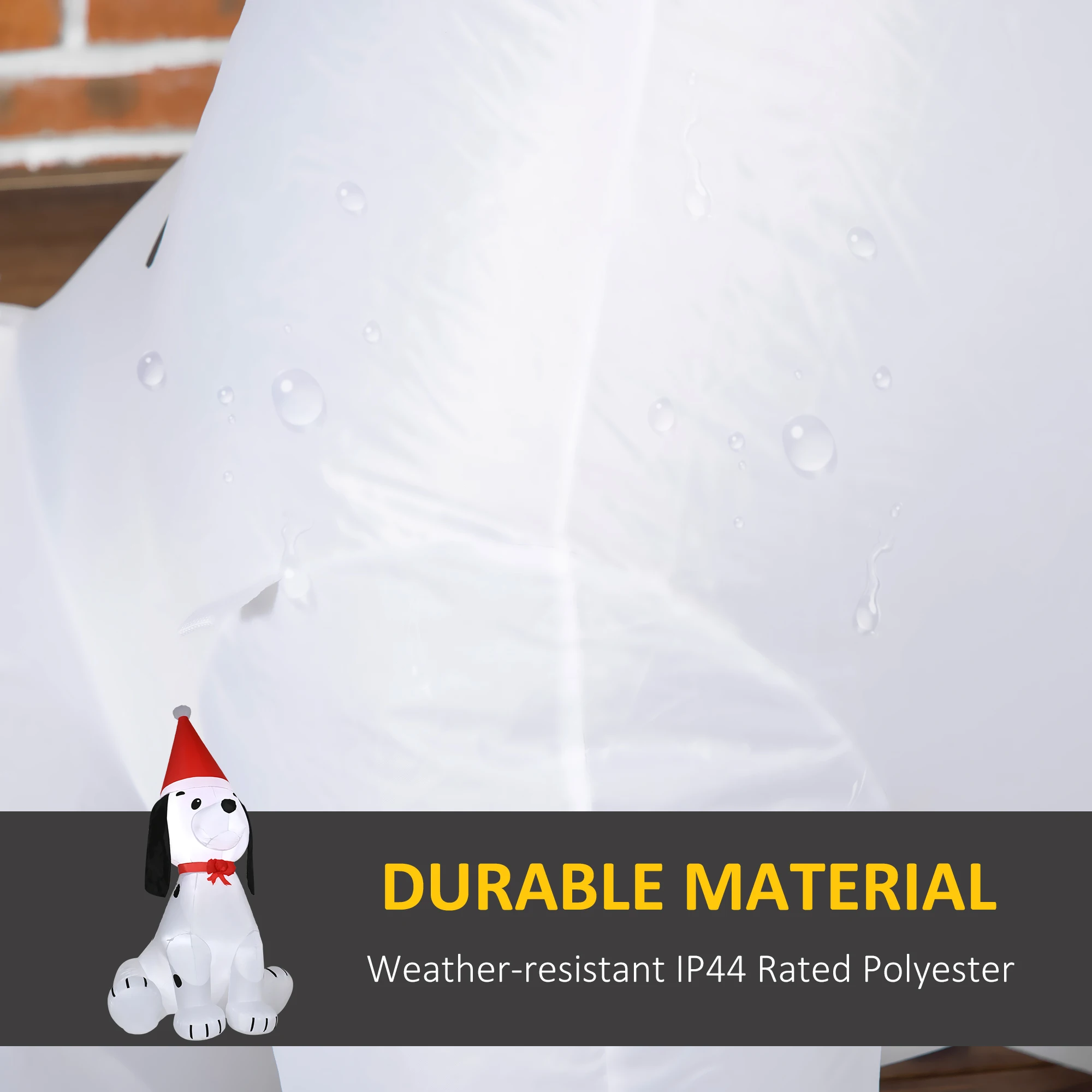 - Type: Inflatable Christmas decoration with a cute white dog sitting on the ground wearing a Santa Claus hat